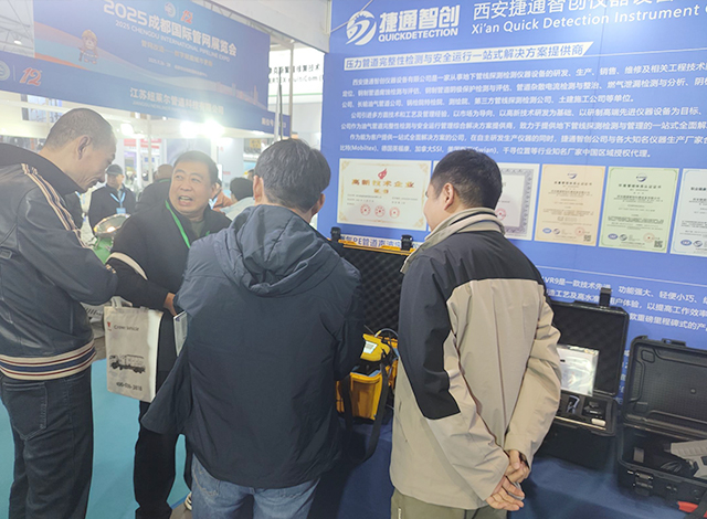 11月27日,迎來了由中國煤炭地質總局、中國測繪學會地下管線專業(yè)委員會主辦的為期3天的2025年第十二屆中國(成都)國際管網展覽會城市生命線安全工程建設展覽會第二天。本屆展覽會面積達40000多平方米,500多家參展商,700多家采購團體,40多場行業(yè)論壇,200多位演講嘉賓,匯集了50000多觀眾。作為專業(yè)的交流、互動、協(xié)作平臺,國內外頂尖的地下管網企業(yè)、行業(yè)內權威的專家學者都將齊聚于此。展覽會首日捷通智創(chuàng)4號館4A31號展臺就人氣爆滿,眾多行業(yè)大咖蜂擁而至,捷通智創(chuàng)自主研發(fā)生產的一系列燃氣PE管道聲波定位儀和PPB級高精準燃氣泄漏巡檢系統(tǒng)(車載及背包式)產品及激光甲烷泄漏檢測儀產品和眾多代理產品一經亮相,便受到了眾多客戶的喜愛,瞬間燃動現(xiàn)場。